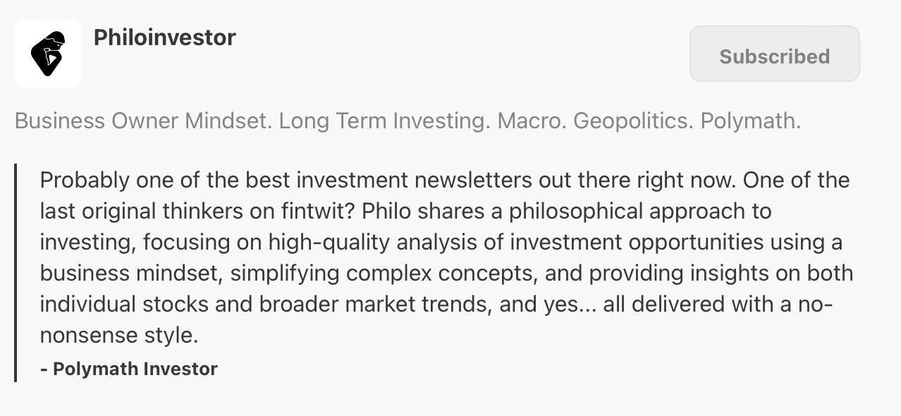 Welcome to the Philoinvestor newsletter by Philo 🦉