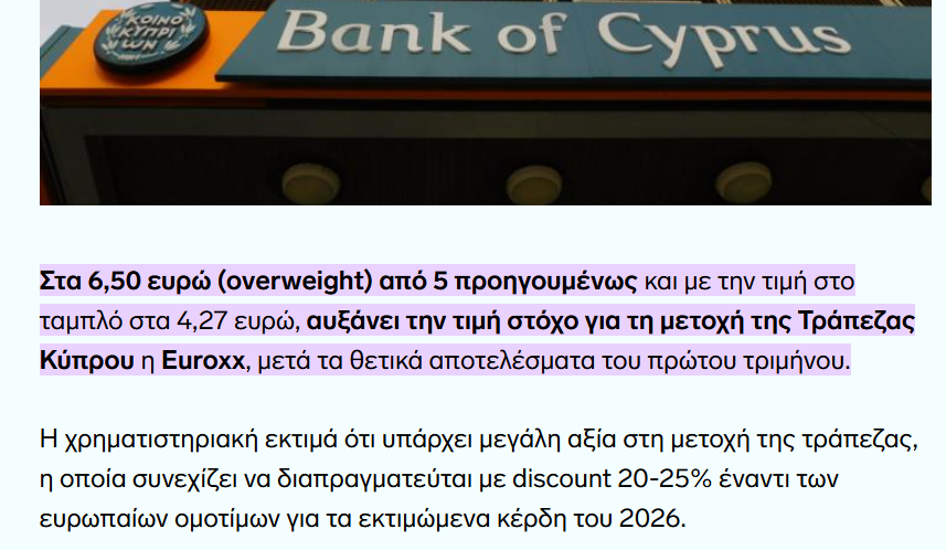 - Είχαμε θετικά reports από ειδικούς που έδιναν τιμή στόχο τα €6,50 και ότι η μετοχή είχε μεγάλη αξία και ήταν υποτιμημένη έναντι άλλων τραπεζών