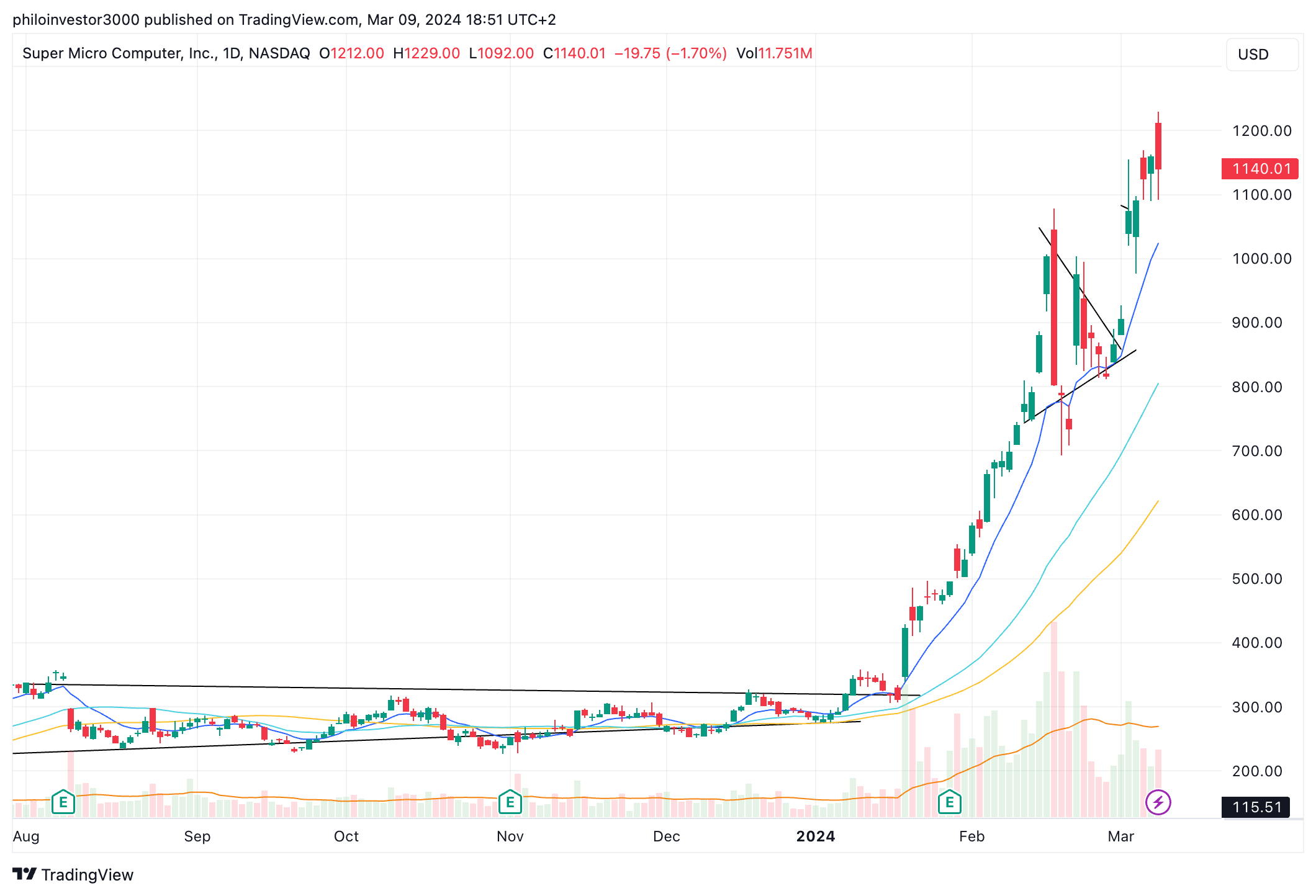 After a sideways move that spanned 6 months, SMCI and NVDA both broke out in early January and haven’t stopped since.