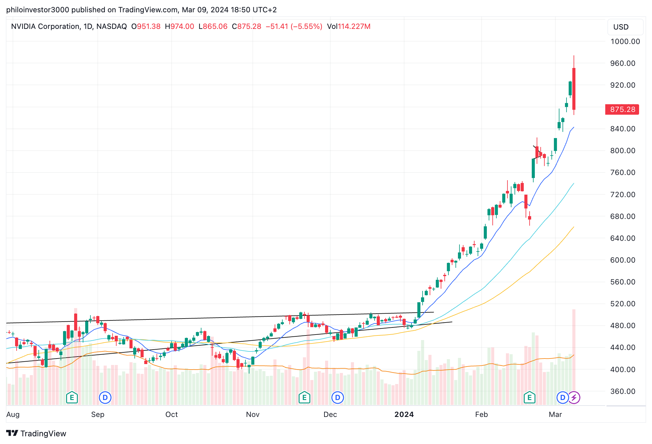 A move below that will give me more conviction that we are going to slide down from here. The EMA10 sits at $842.90 and I wouldn’t be shocked if Nvidia even retests the $500 - $550 area… 👀