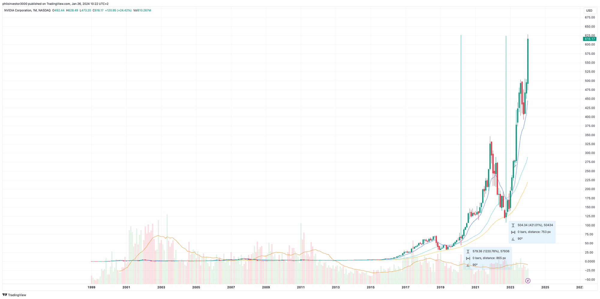 In fact, NVIDIA stock was down 67% in just one year, until the launch of Chat GPT in November of 2022. Since then, the stock is up 420%.