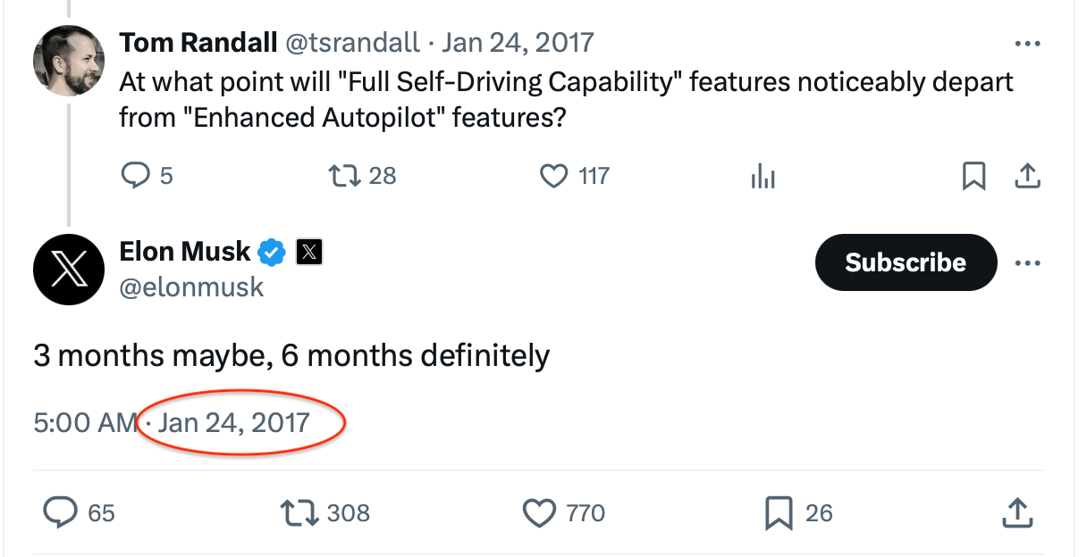7 years on and FSD (full-self driving) is still a mess and Tesla’s shareholders have been stacked with false promises — but until recently that worked just fine.