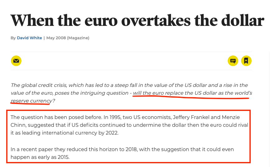 In the early years post introduction of the EU — there was serious talk that the Euro could challenge the global dominance of the US Dollar.
