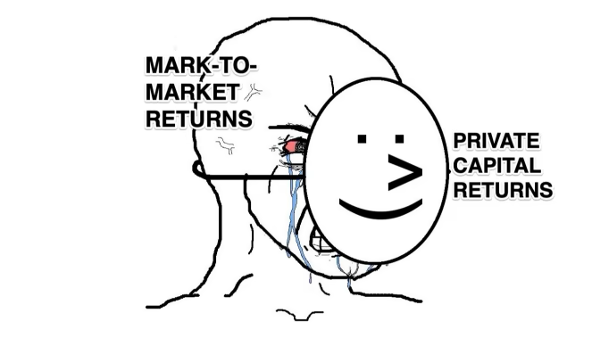 They still have the reputation that they overperform public equities, even if certain academics argue against that. They also still benefit from the fact that private markets don’t really mark-to-market in the same brutal way that public markets naturally do — allowing PE LPs to benefit from smoother and more “artificial” returns.