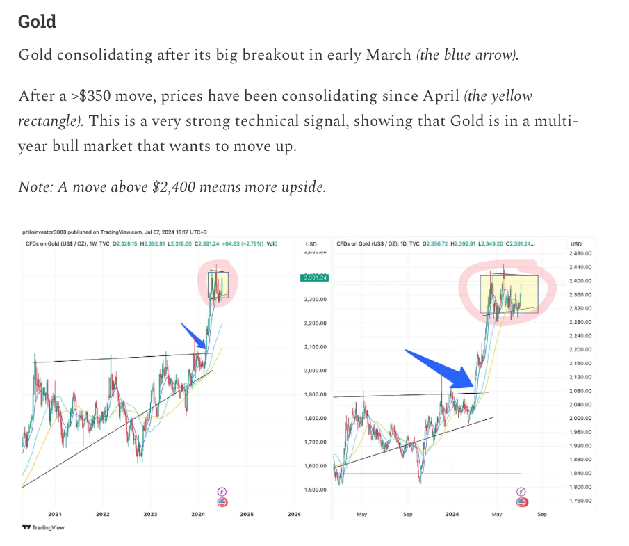 Since Gold broke out of this flag formation (shown below in yellow) โ itโs up another $250 to $300.
