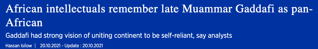 It’s obvious that the West does not want a united Africa — rather they want to be able to exert uncontested influence in Africa and benefit from it. This is why he was taken down, to stop the momentum and to set an example to anyone else with the same ideals.
