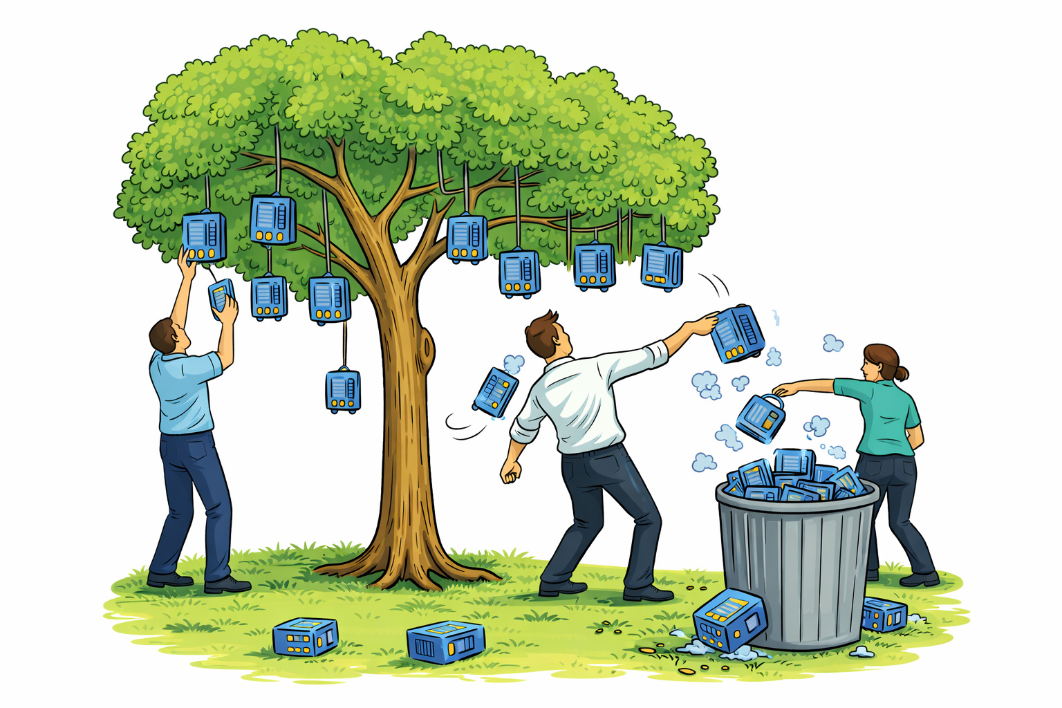 The joke seems to be that everyone is telling everyone else to deploy an army of agents, but that no one knows why.