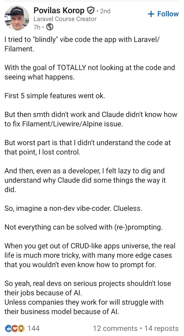 Why will it be someone new that will use the powers of LLMs to vibe code a substitute and somehow magically engineer a working version — and then capture the whole market via the distribution he doesn’t even have?