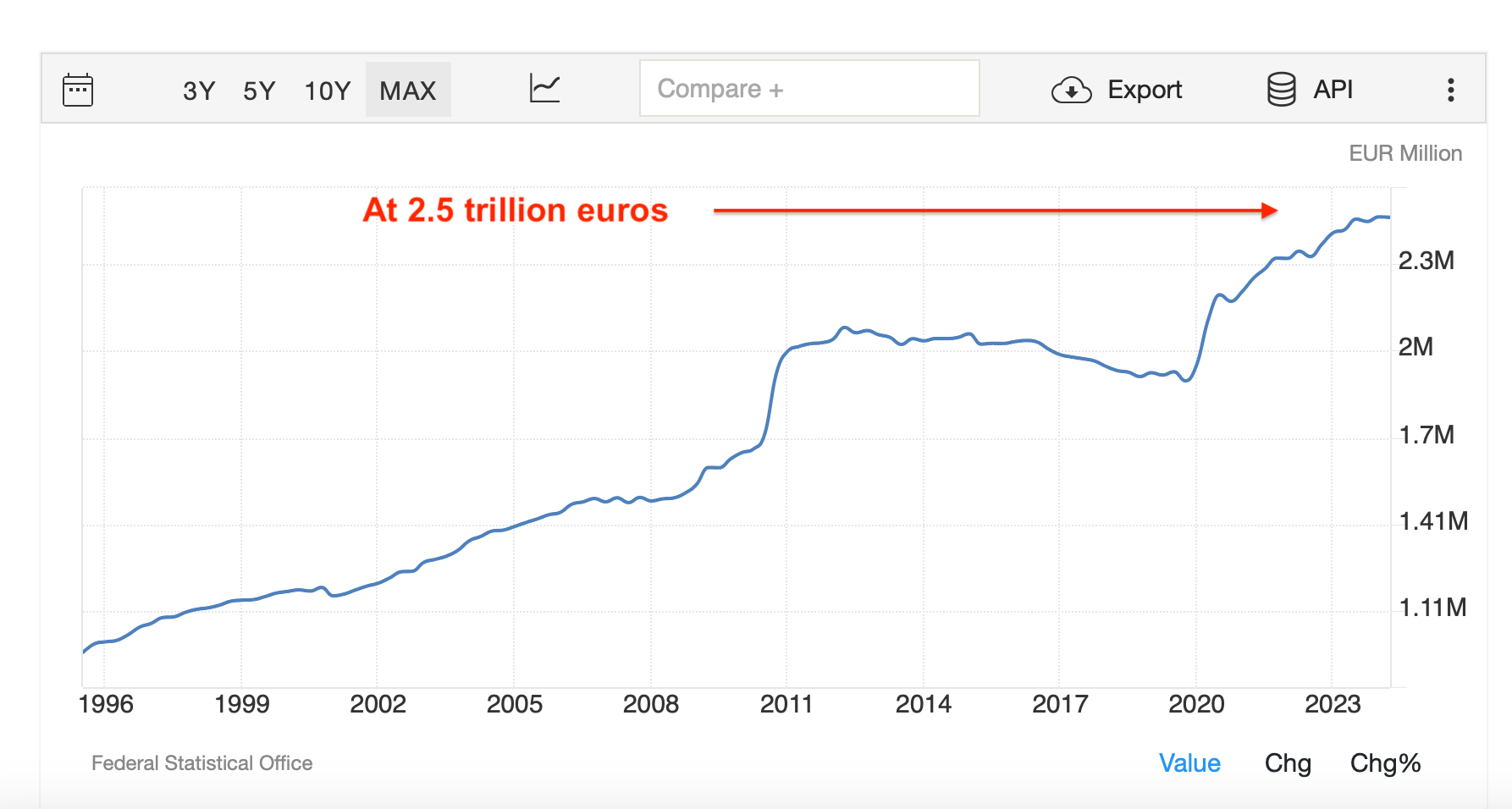 When you scratch the surface you see that the German economy has been going sideways since 2019 while the absolute levels of debt have been going up and up.