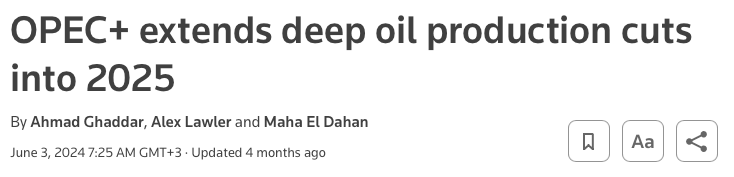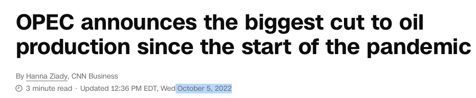 OPEC started cutting production in October of 2022, and that’s when the big fight between the Biden Administration and Saudi Arabia started. Remember that? 👇
