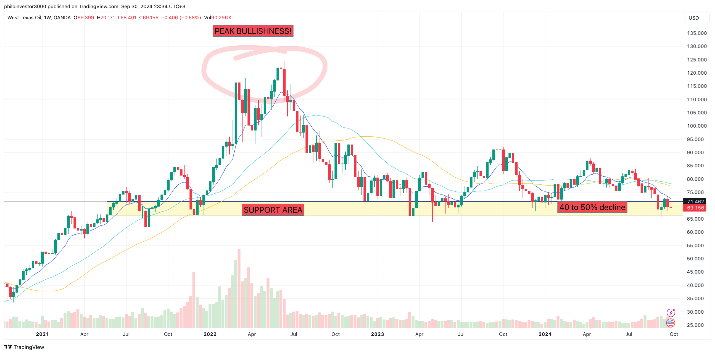 But now, the world seems to be flush with oil — WTI is currently selling for under 70$. It touched $130 in early 2022, not exactly time for big projects and capex, is it?