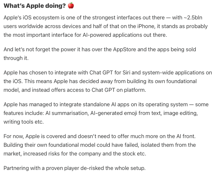 The below is an expert from the AI Tech Playbook piece on Apple’s ecosystem, their AI strategy and why the interface layer matters 👇