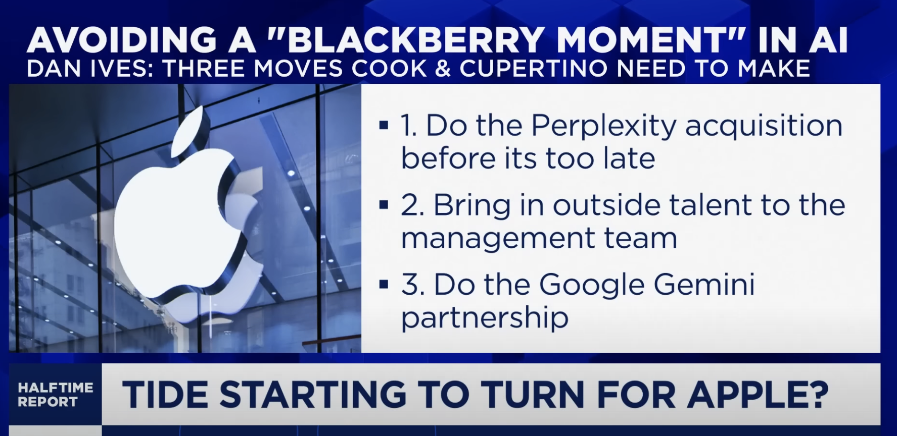 Overly colourful talking-head Dan Ives is banging the table on Apple’s Blackberry Moment and how they need to execute on an AI strategy before it is too late..