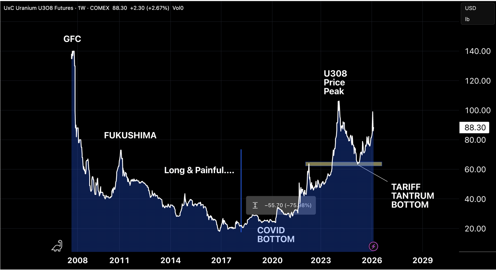The Global Financial Crisis of 2007 (“GFC”) later compounded by the Fukushima Incident broke the Nuclear Revival play and by extension, Uranium.