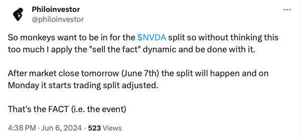 - June 10th, Stock SPLITS: I was expecting weakness (i.e. the Sell the fact)