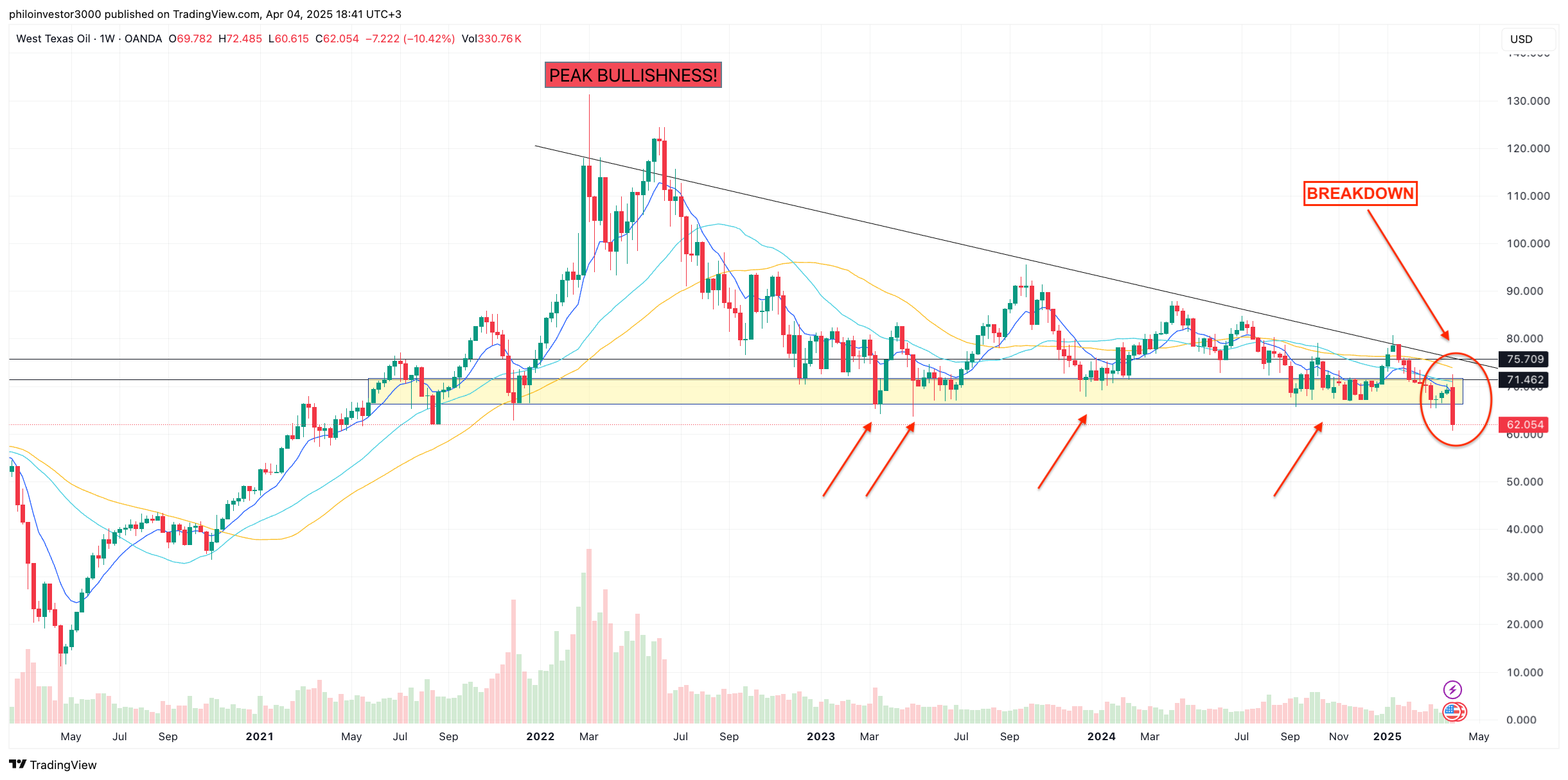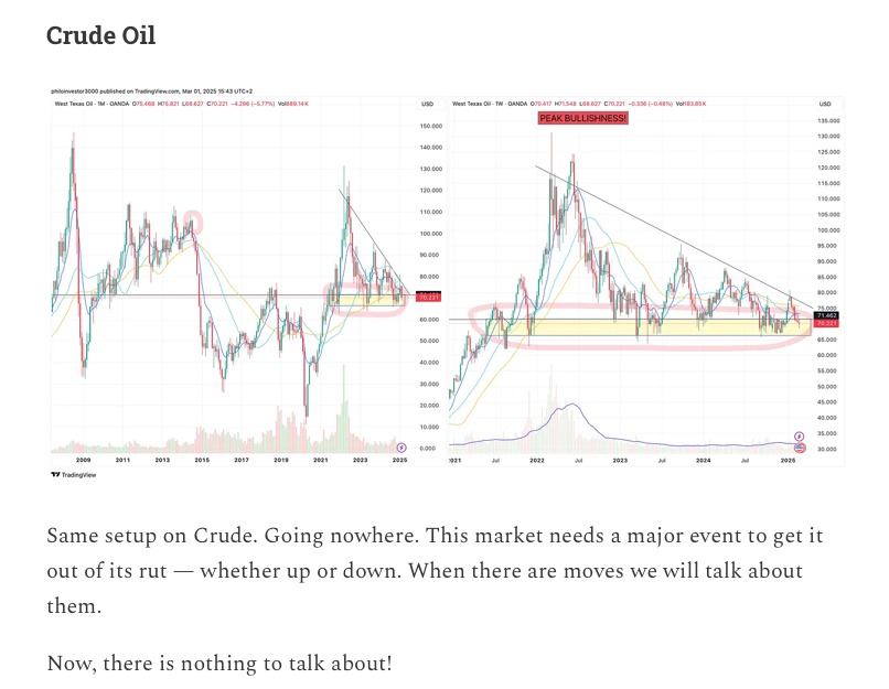 Crude has been bouncing off the yellow range for 2 years now, after having crashed down from “PEAK BULLISHNESS” — remember all that? 😆