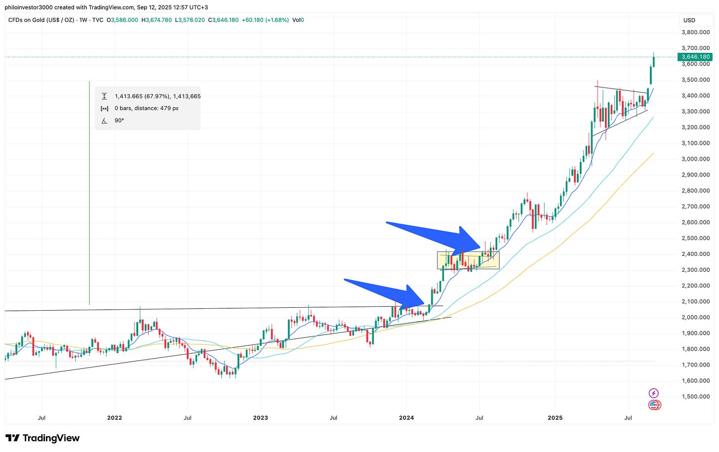 —> The quote above is from the last Breakout — we now see Gold decisively broke that pattern and blasted higher.