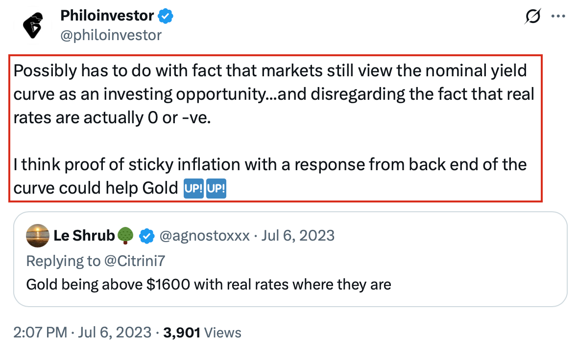 And so inflation would remain sticky — keeping real rates low, and eventually pushing Gold up.