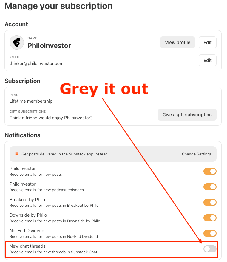You will no longer receive new chat threads in your inbox from Philoinvestor.