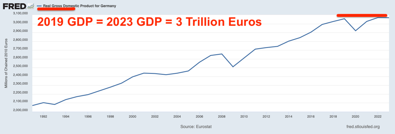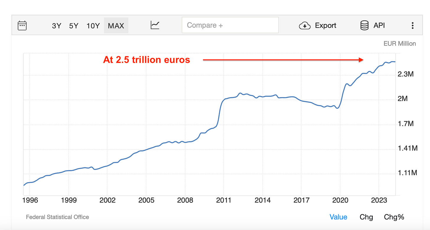 When you scratch the surface you see that the German economy has been going sideways since 2019 while the absolute levels of debt have been going up and up.