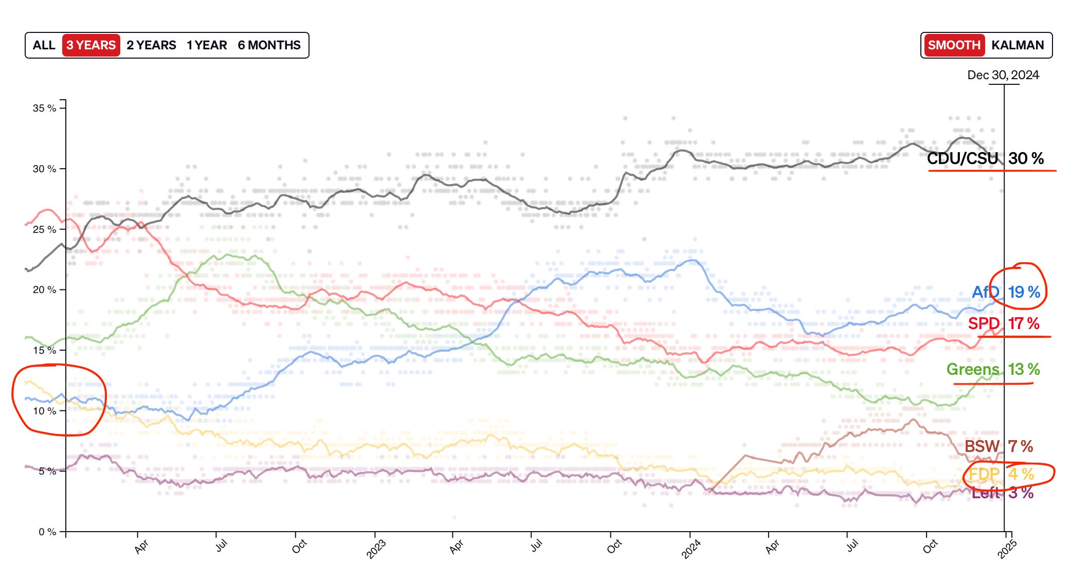 Note that former Finance Minister Lindner comes from the FDP (Junior partner in the coalition) while Scholz is from the SPD. The FDP has been tanking in the polls since it joined this coalition — which was one of the reasons I predicted they would eject themselves at some point.