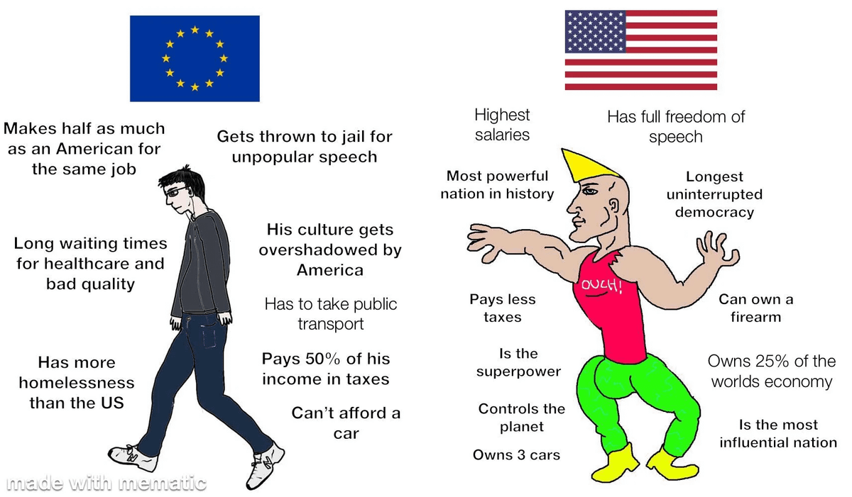 And so this viral thread on X here forgot to mention this basic conflict of interest, that the US doesn’t want a strong EU at par with the US. And until the EU stands up to the US, nothing will change.