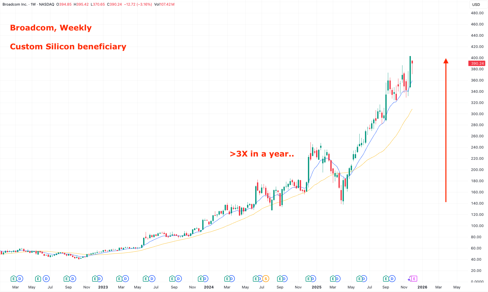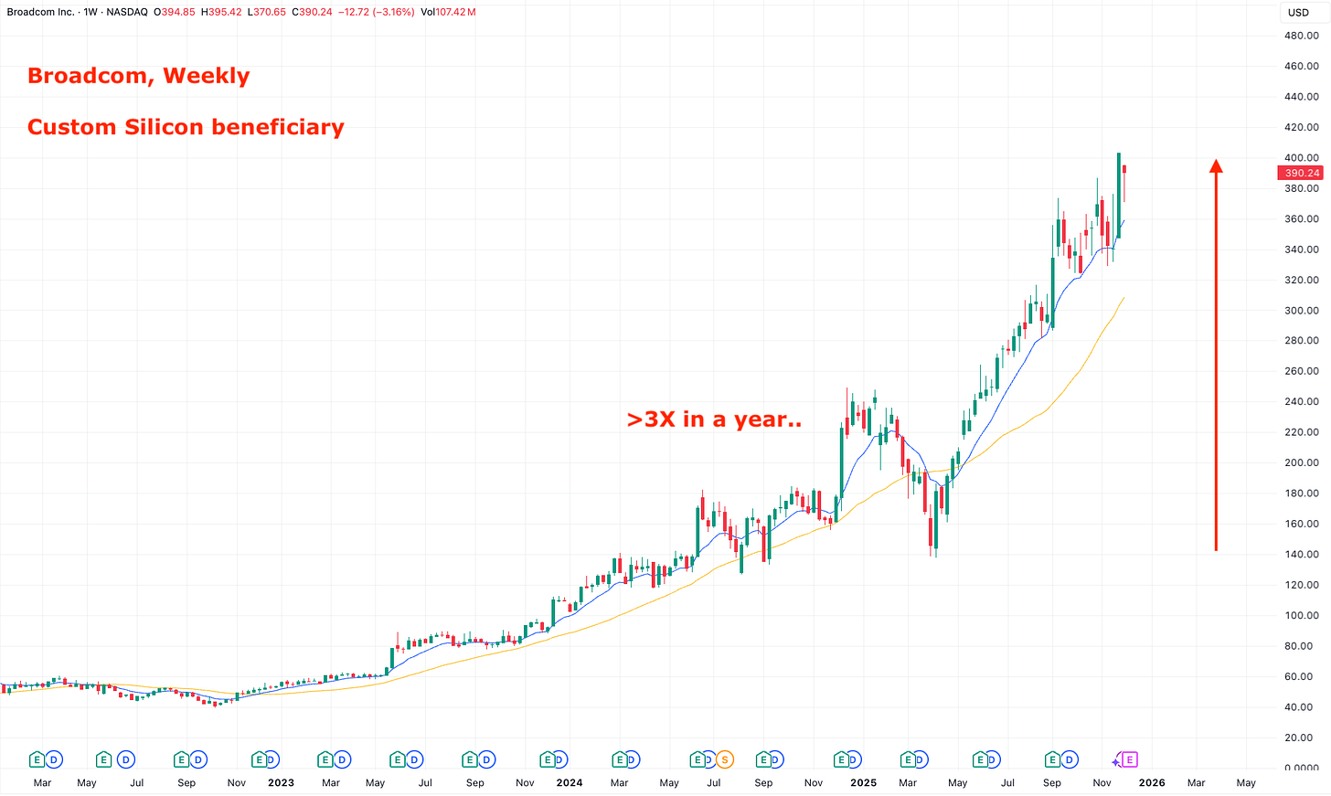 Broadcom is a leader Custom Silicon and its share price shows it. The company is close to hitting a $2trillion market cap — and FY25 revenue is expected at less than $70 billion. That’s almost 30X Sales…
