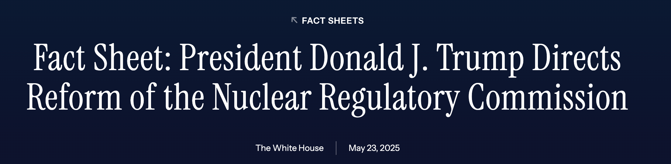 Trump 2.0 in May signed an Executive Order to reform the NRC and push Nuclear strong.