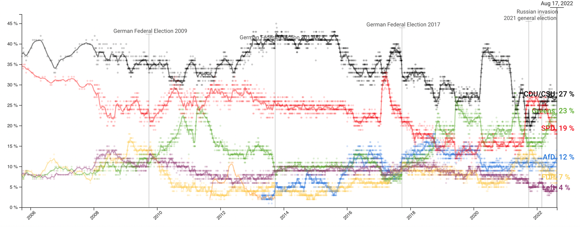 German elections voting intention since 2005. From Politico. ↩