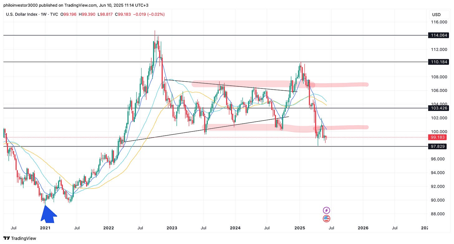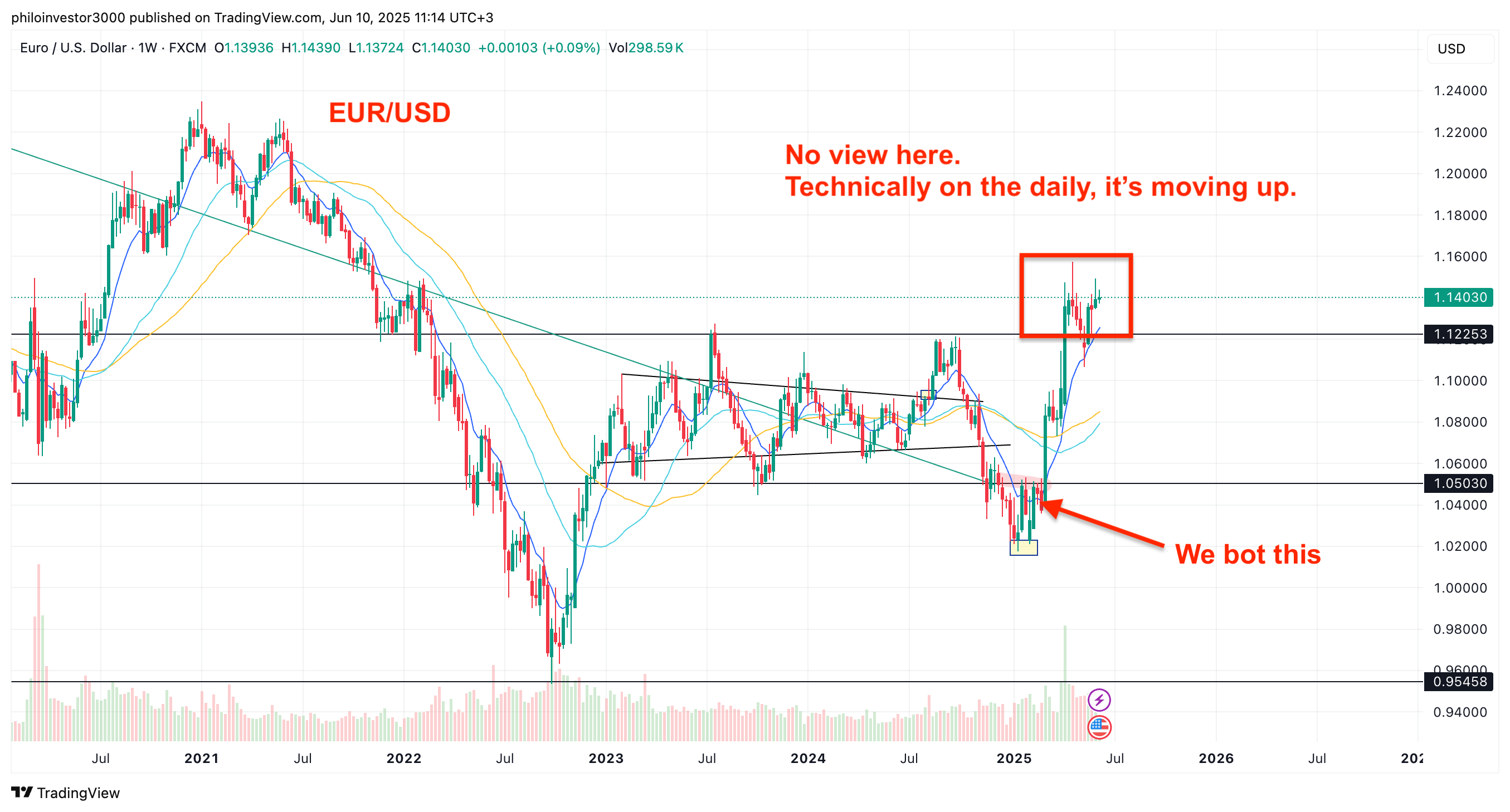 The move in the Euro is what’s keeping the DXY down (40% weighting). Renewed European hopes and a new German government that went all in on growth and militarisation has been well-digested by markets. Laugh now cry later, I guess…