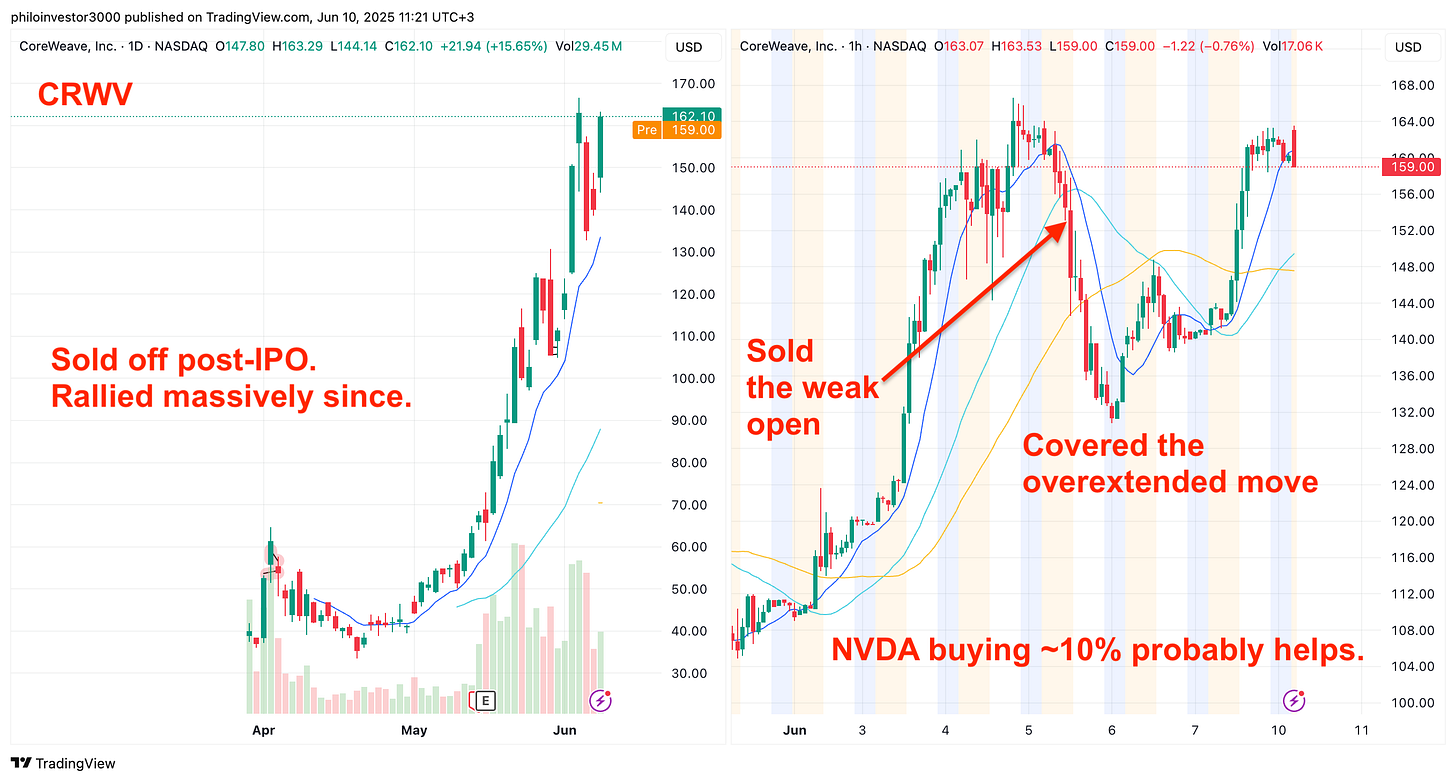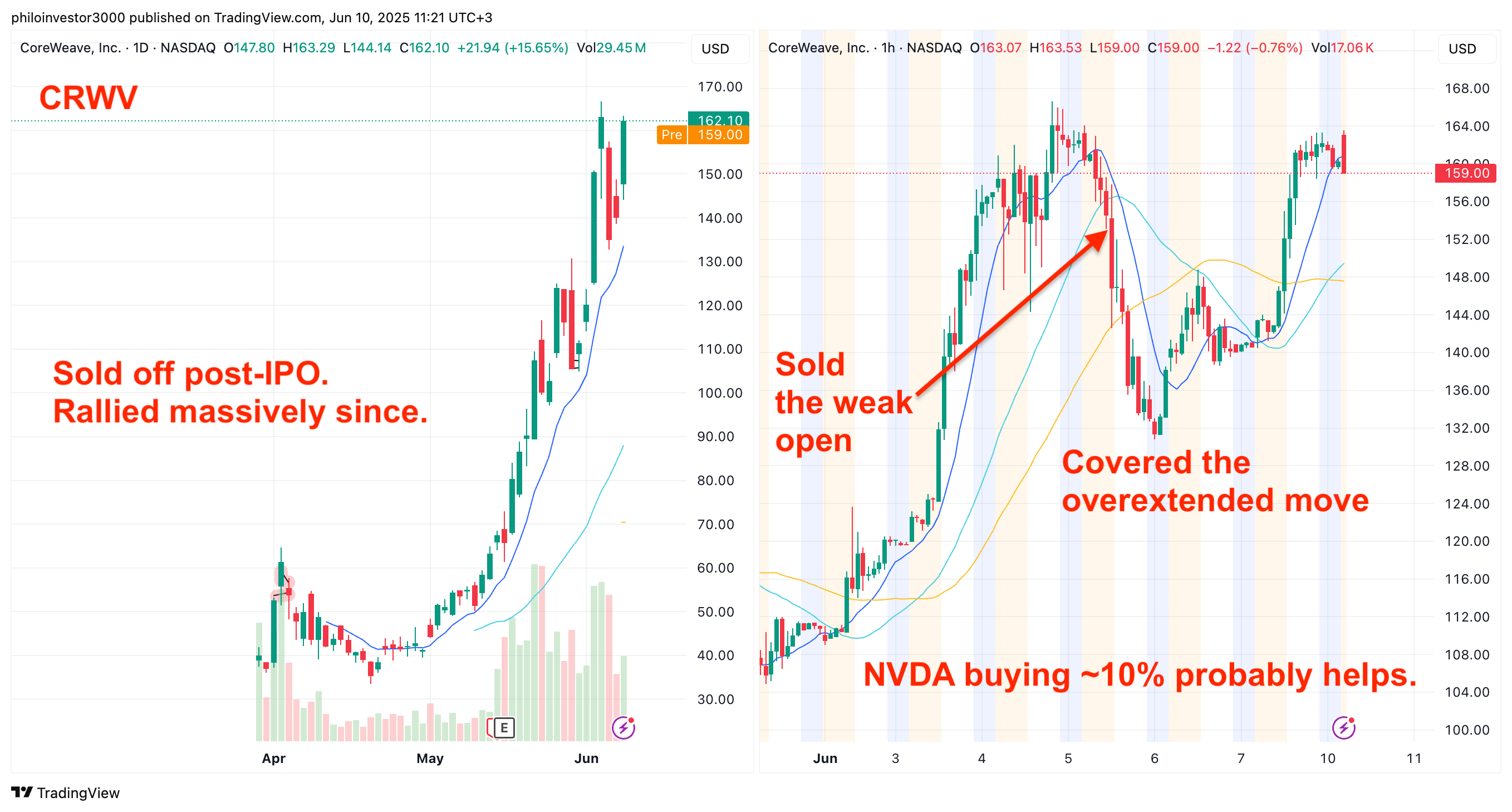 Philoinvestors that follow the Philochat know we traded them both — CoreWeave on the short side last week and CRCL on the short side yesterday.
