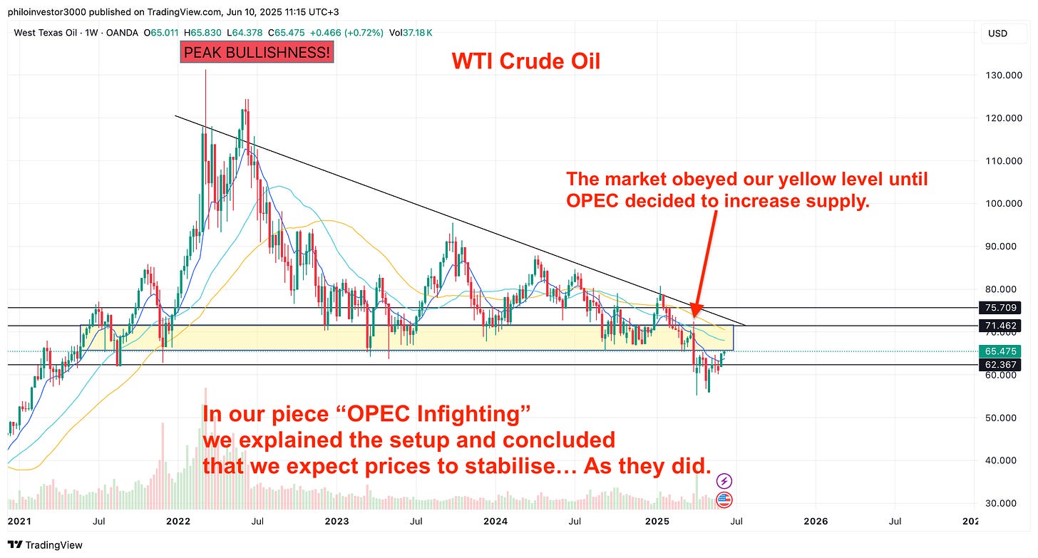 Crude not moving.. An escalating broader conflict in the Middle East, OPEC increasing supply, Trump 2.0, tariffs this, tariffs that — and Crude is still there. Not much more to say about its technical picture for the time being.