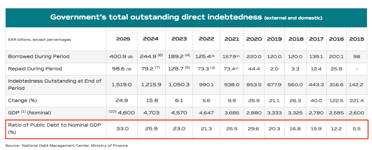 The Kingdom has increasingly started tapping into capital markets to raise debt and use the capital to further its agenda (Vision 2030 etc.)