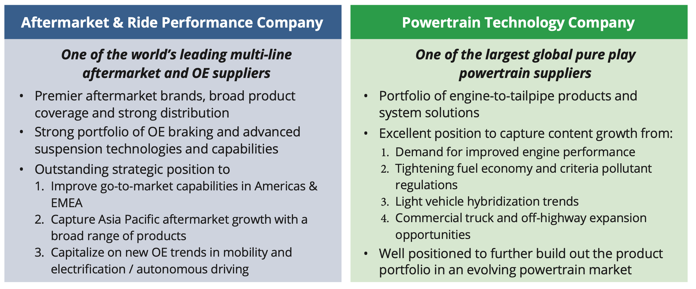 Tenneco levered up excessively to acquire Federal Mogul, making it super sensitive to cyclical changes. If leverage was less, Tenneco would have been in a much better position.