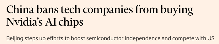 - China banned NVDA’s AI chips on September 17th