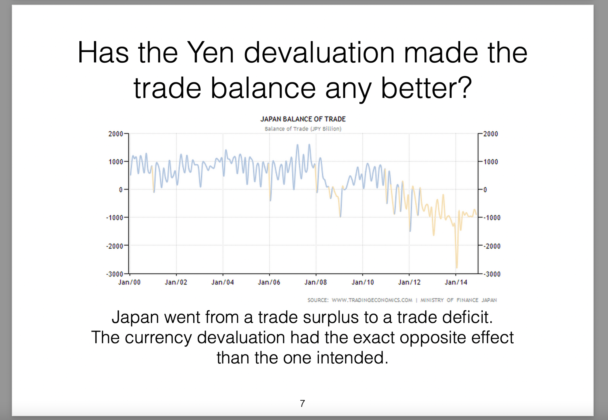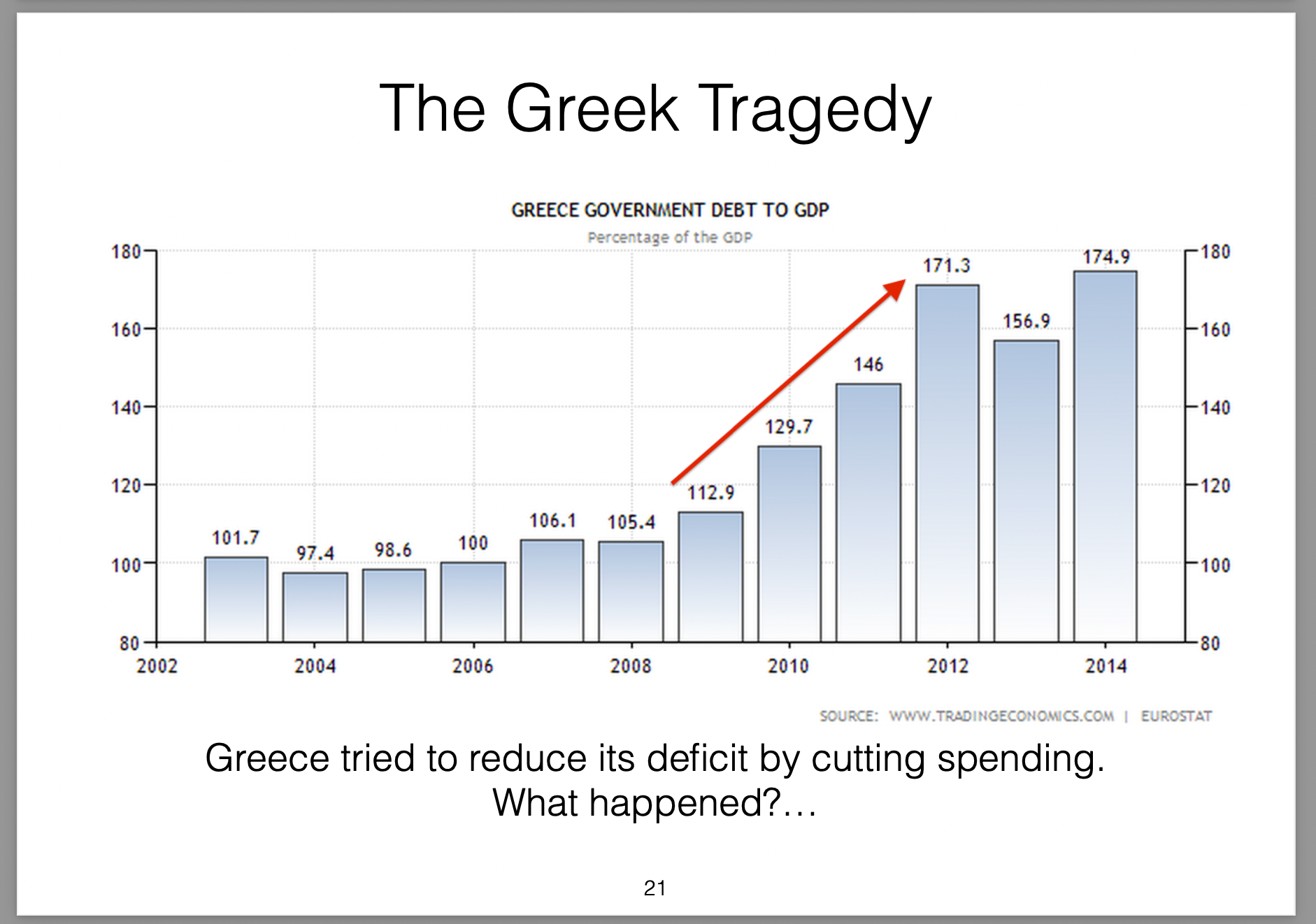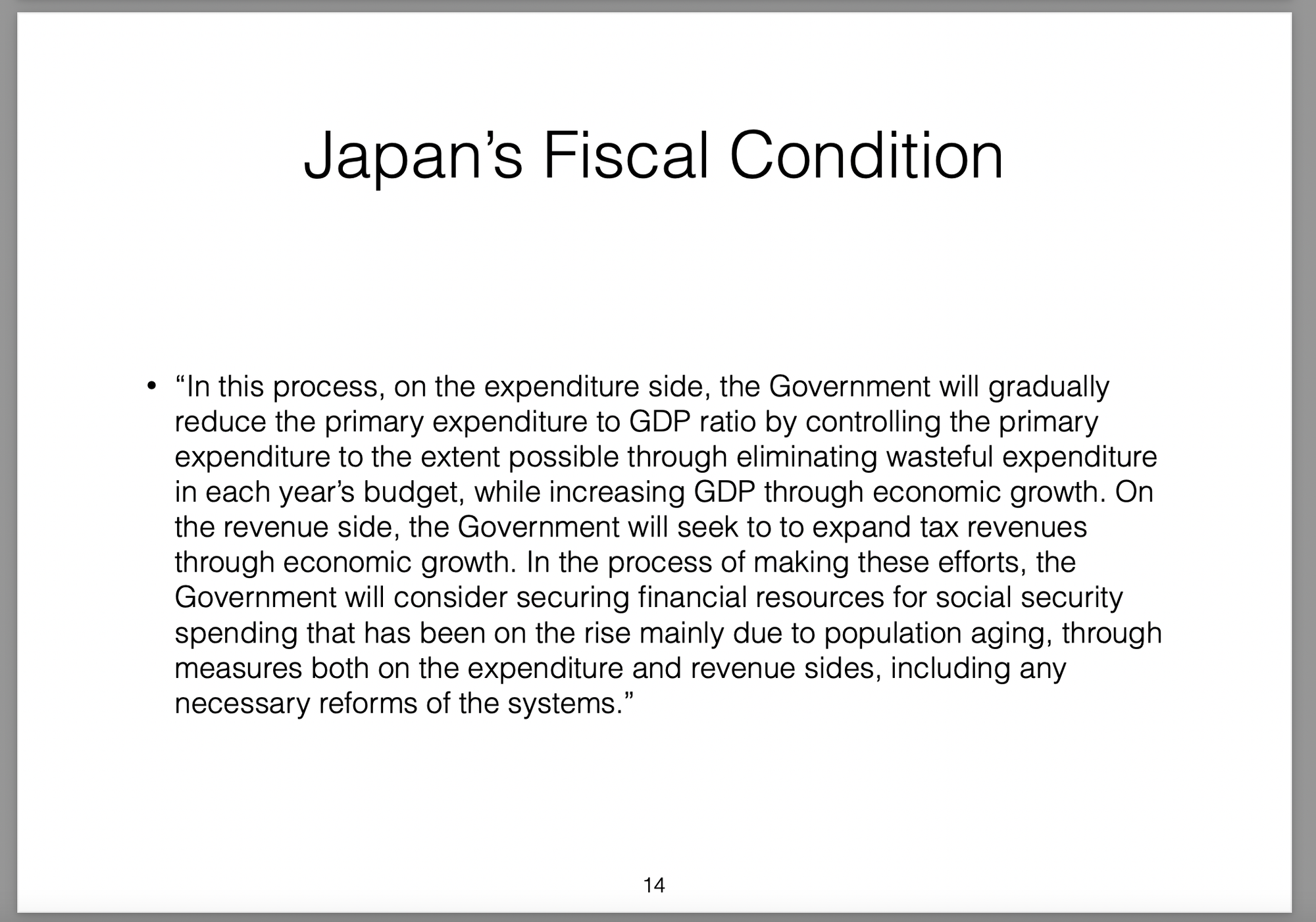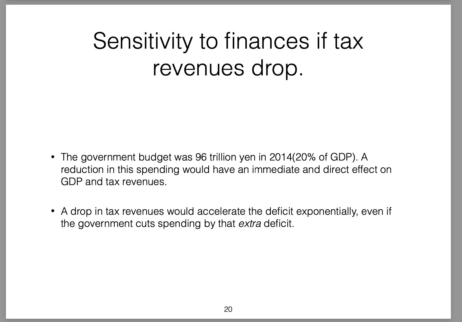 Those policies were broken down into three parts (the three arrows) and labelled Abenomics. In this presentation I offer my own critique of those policies, my view on the results they would produce and then draw analogies with the Greek economic situation at the time.