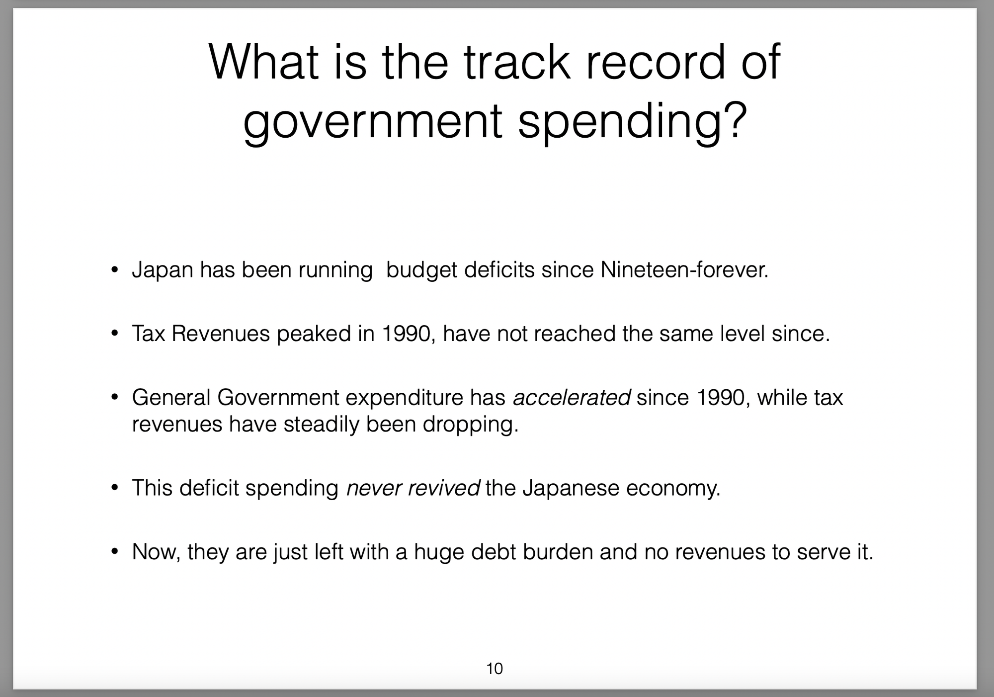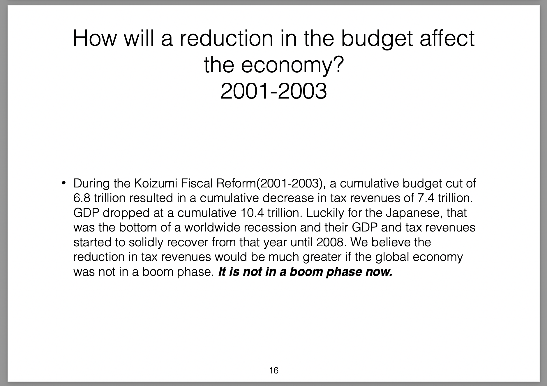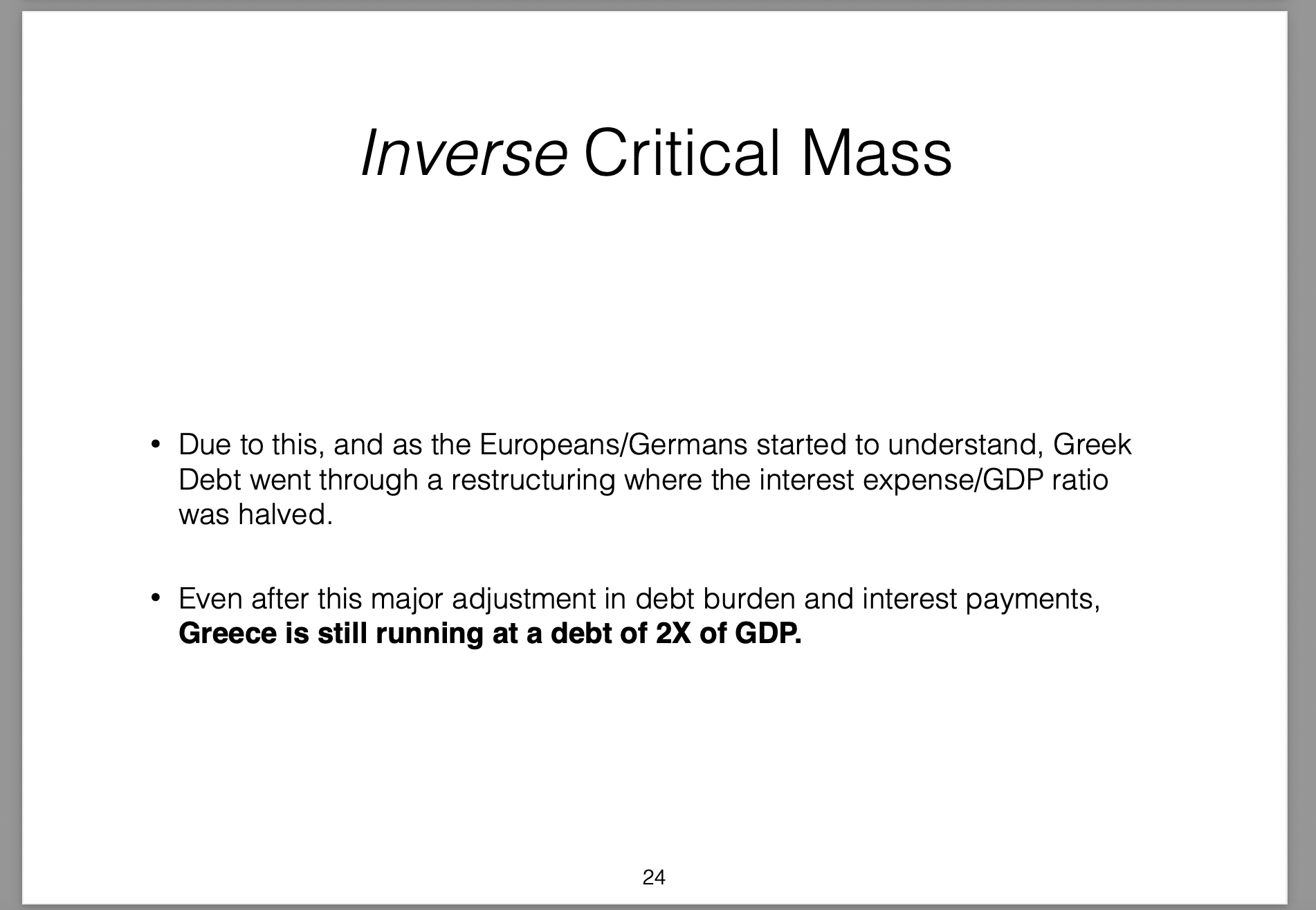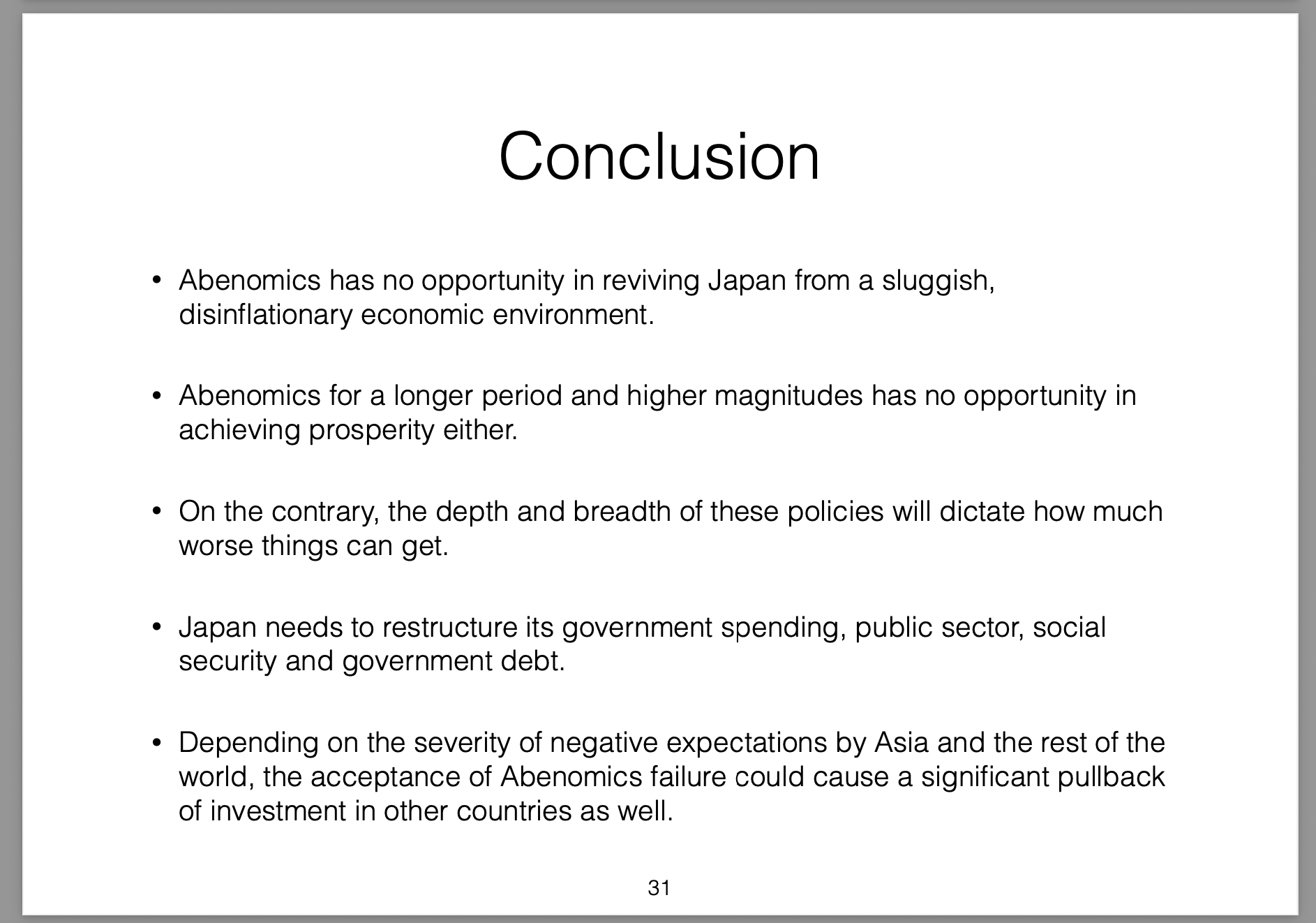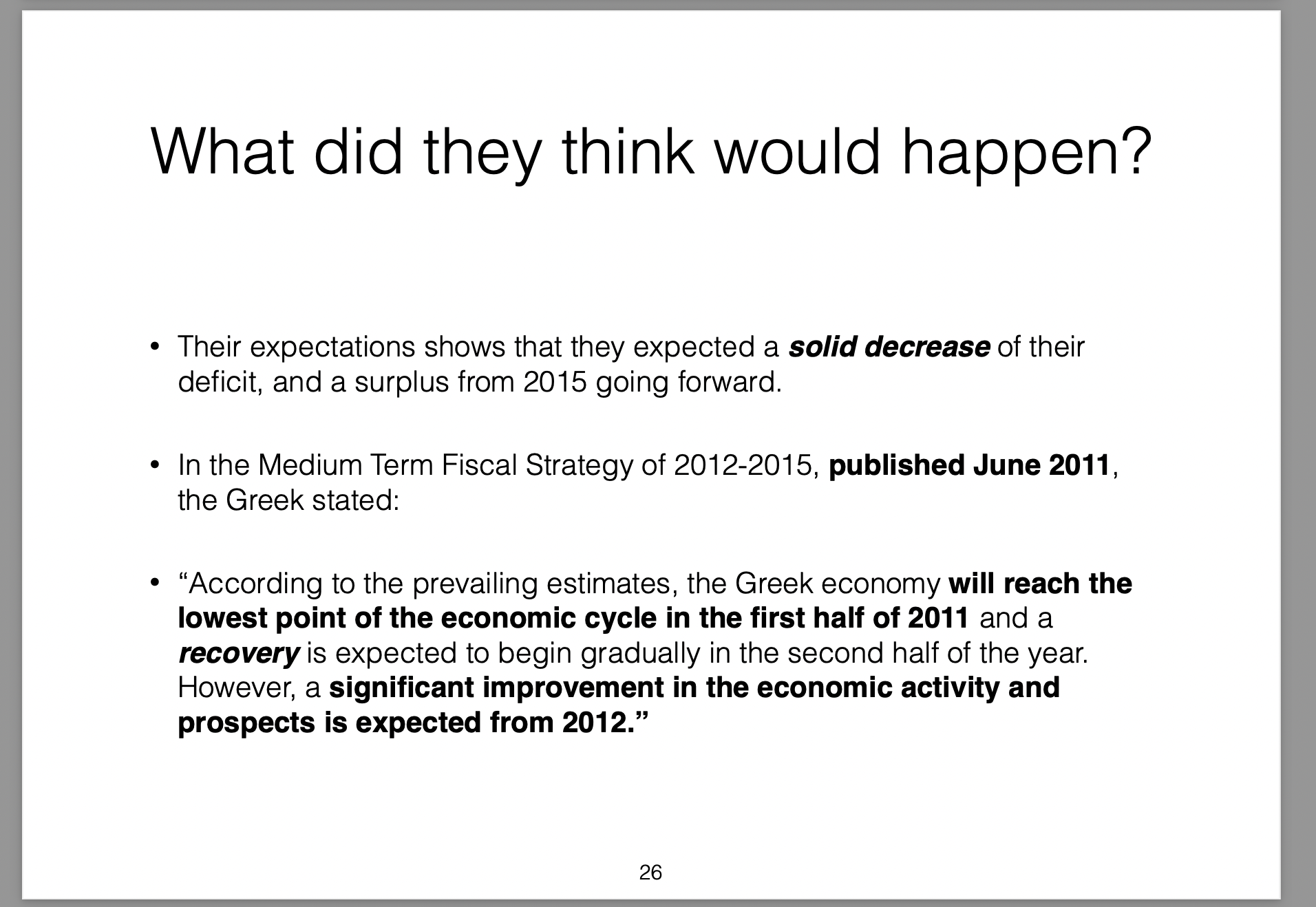 Those policies were broken down into three parts (the three arrows) and labelled Abenomics. In this presentation I offer my own critique of those policies, my view on the results they would produce and then draw analogies with the Greek economic situation at the time.