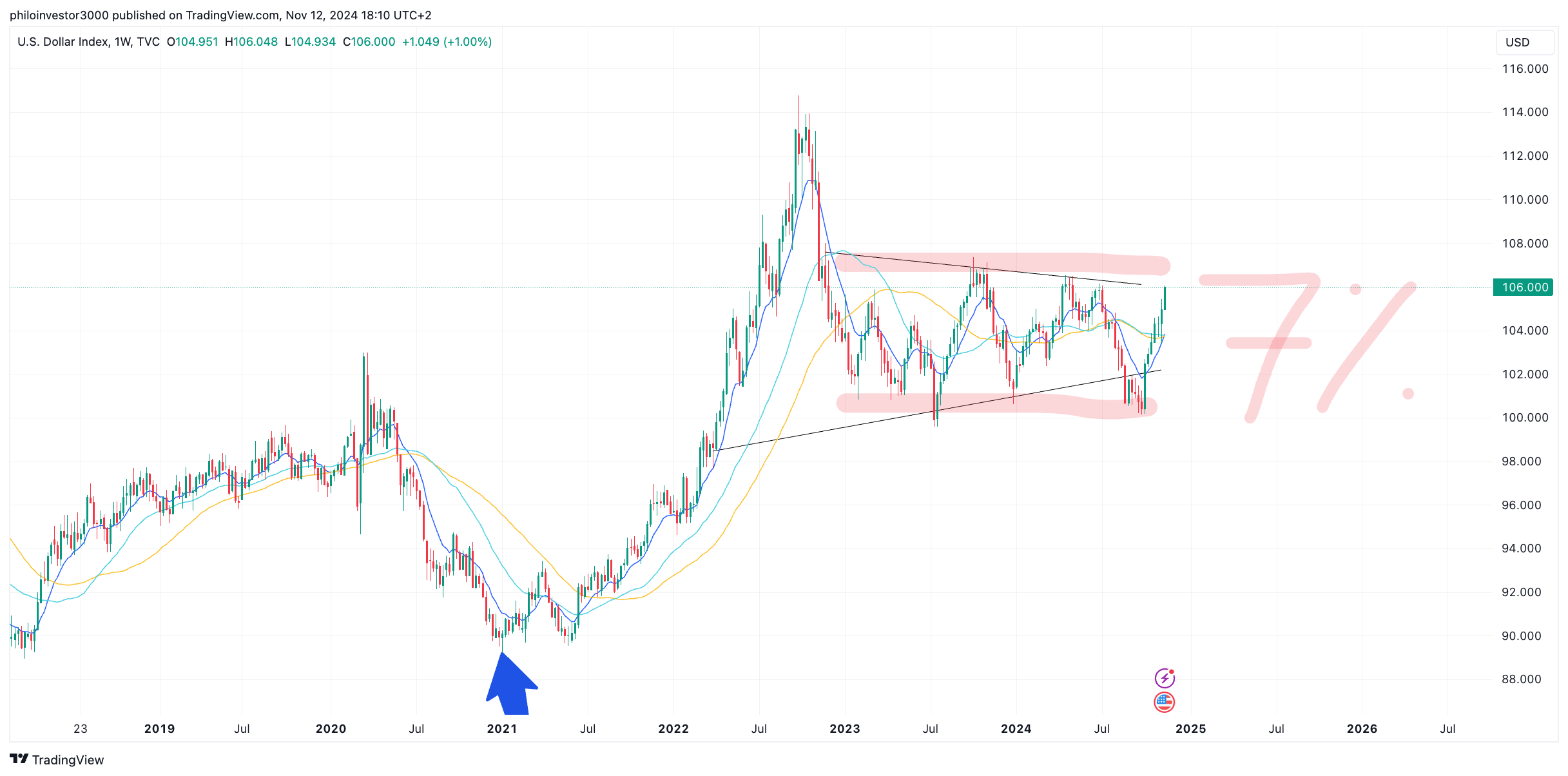 Well, the DXY bounced off the support line (rosé crayon support below) and is still rallying. Things that helped the Dollar in this trend: