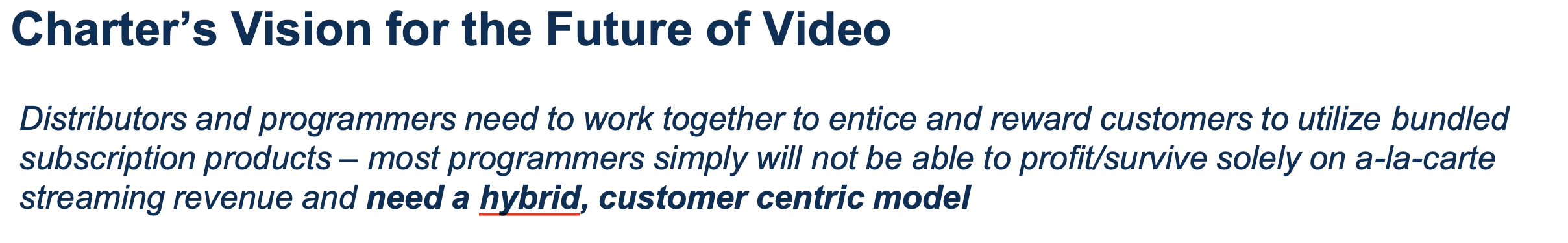 In the end, Disney conceded to exactly that and a deal was struck. Charter has made it clear that this is the new model that they intend to follow for all their new programming agreements coming up. This new state of affairs is transformational for Legacy as well as Cable — the latter now stands a fighting chance to beef up their value propositions and reduce the pace of cord cutting…