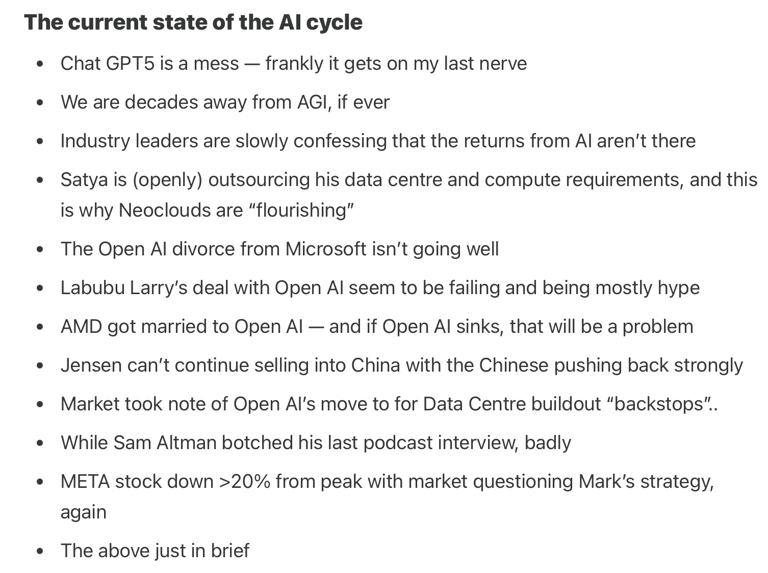 Our work on the AI Cycle starting with the Techno-Imperial Cycle piece — and subsequent mega-pieces, prepared us for a top in AI followed by a subsequent bust.