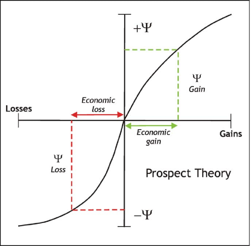 The Nobel award-winning Prospect Theory postulates that individuals assess their loss and gain perspectives asymmetrically. That is to say, the pain from a $10,000 loss is twice in magnitude the pleasure of a $10,000 gain.