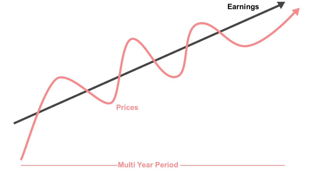 Even if earnings theoretically always increase over time, prices can drop and cause losses for long periods of time.
